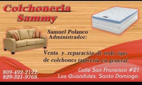 COLCHONERIA SAMMY PROFESIONALES A SU ALCANCE COLCHONERIA SAMMY (809)492-2122, (829)321-9768 VENTA Y REPARACIÓN DE TODO TIPO DE COLCHONES TAPICERÍA EN GENERAL,COLCHONERIA SAMMY CALLE SAN FRANCISCO #21 LOS GUANDULES SANTO DOMINGO COLCHONERIA SAMMY (809)492-2122, (829)321-9768 Compártelo: Compartir en X (Se abre en una ventana nueva) X Comparte en Facebook (Se abre en una ventana nueva) Facebook Me gusta Cargando...